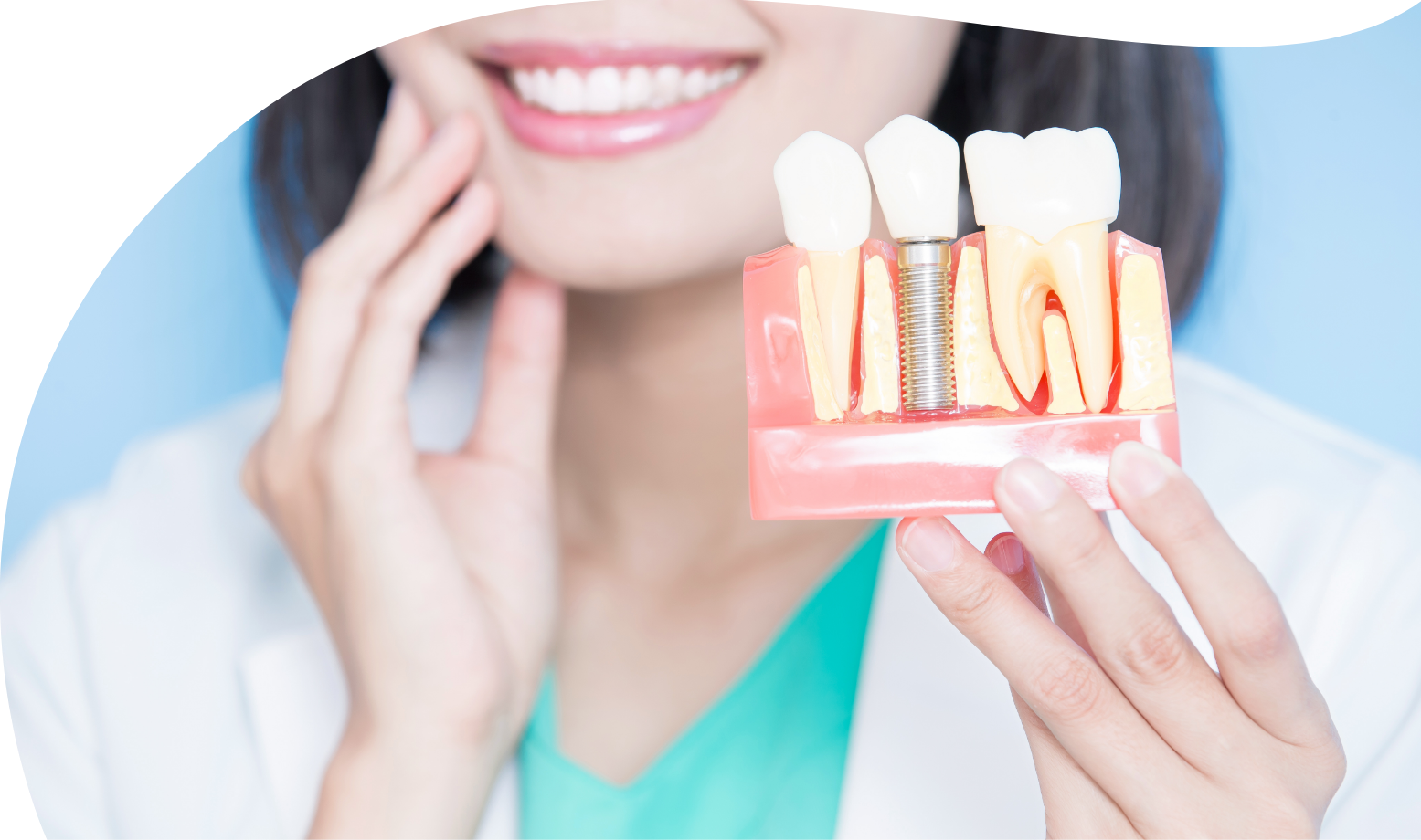 インプラントとは、歯の無くなった場所に人工歯根を埋め込みその上に天然歯に近い人工歯を取り付け、自然に近い見た目と機能回復を追及した画期的な歯科治療です。